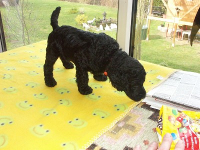 Heinrich: "In meinem Welpenauslauf war wenigstens noch ein Tunnel drin. Aber bei eurem komischen Pudel-Krönchen (oder sind das die Chip-Antennen?) wäre ein Tunnel ohnehin unsinnig. Wann werdet ihr denn abgeholt?"
